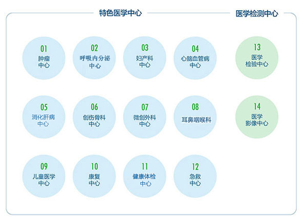 醫(yī)院秉承“綜合優(yōu)勢明顯,專科特色突出”的辦醫(yī)院方針,組建了12個(gè)臨床科室,包括心腦血管病科、呼吸內(nèi)分泌科、腫瘤科、消化肝病科、創(chuàng)傷骨科、微創(chuàng)外科、婦產(chǎn)科、兒科、體檢中心、耳鼻咽喉科、康復(fù)科等科室。