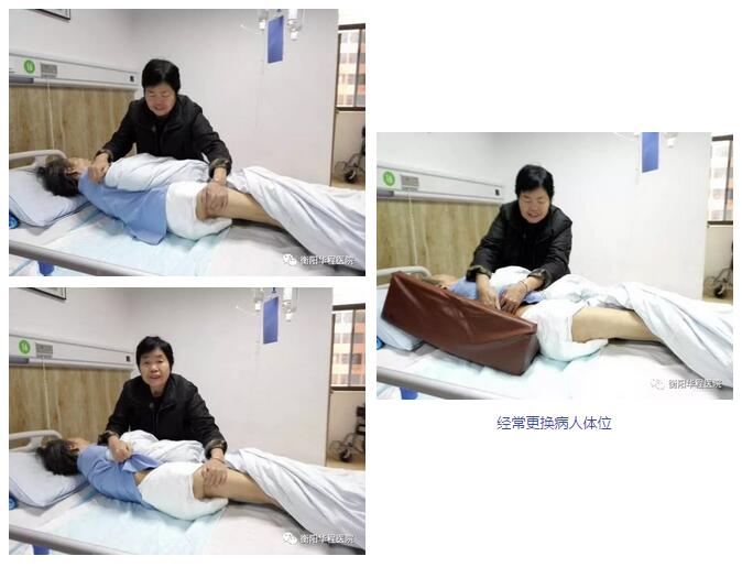 褥瘡是因長期受壓而致,幫助病人更換體位就成為必不可少的防褥瘡步驟,兩個小時就要記得翻一次身。如果皮膚出現(xiàn)瘀紅現(xiàn)象,則應(yīng)縮短翻身時間,并用溫毛巾進(jìn)行按摩,促進(jìn)血液循環(huán)。