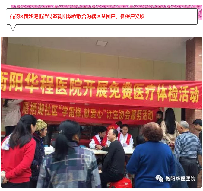 為提高貧困戶、低保戶的自我健康意識(shí),建立科學(xué)、文明的健康生活方式,石鼓區(qū)黃沙灣街道特邀衡陽華程醫(yī)院為他們提供免費(fèi)測(cè)量血壓、血糖、心電圖等醫(yī)療服務(wù),并建立個(gè)人健康檔案,許多貧困戶和低保戶對(duì)此感到特別溫暖。據(jù)了解,此次“學(xué)雷鋒 獻(xiàn)愛心”志愿醫(yī)療服務(wù)活動(dòng)將持續(xù)一個(gè)月時(shí)間,活動(dòng)將在以下單位展開:
