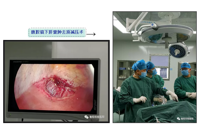 腹腔鏡技術(shù)未廣泛應(yīng)用于臨床前,肝囊腫多采用超聲引導(dǎo)下經(jīng)皮肝穿刺或開腹肝囊腫去頂開窗引流術(shù),前者創(chuàng)傷小但易復(fù)發(fā),后者療效好,但創(chuàng)傷大,住院時(shí)間長(zhǎng)。隨著腹腔鏡技術(shù)的廣泛應(yīng)用,腹腔鏡肝囊腫去頂減壓術(shù)已逐步替代了上述兩種傳統(tǒng)的方法,衡陽(yáng)華程醫(yī)院微創(chuàng)外科開展腹腔鏡肝囊腫去頂減壓術(shù)治療單純性肝囊腫,具有創(chuàng)傷小、手術(shù)時(shí)間短、出血少、恢復(fù)快、住院時(shí)間短及傷口感染率低等特點(diǎn)。