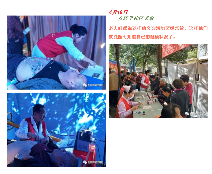 四月,我們?nèi)A程義診小分隊(duì)又展開了如火如荼的社區(qū)義診行動(dòng)了,每次義診都會(huì)受到居民熱烈歡迎,很多居民都說(shuō),一家能動(dòng)用心電圖和B超機(jī)做流動(dòng)義診的醫(yī)院,是實(shí)實(shí)在在在為我們居民的健康著想。