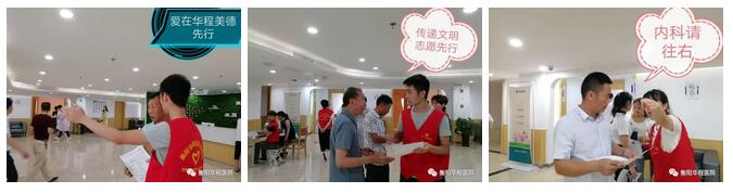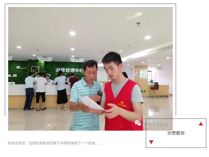 每周六、周日志愿者們會在7:30之前到達健康管理中心,凡到場體檢的個人和團體都會被這眼前的紅馬甲所吸引,很多體檢人員反映:“在以往去過的醫(yī)院中,只有衡陽華程醫(yī)院跟其它醫(yī)療單位不同,在這里大家可以感受到熱情的服務(wù)和更多的體貼入微的照顧,有種像家的溫暖”。