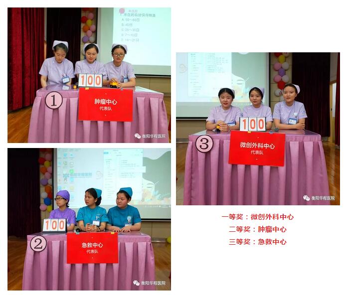 11個參賽代表隊經(jīng)過2個多小時的激烈角逐,最終微創(chuàng)外科中心獲得一等獎;腫瘤中心獲得二等獎;急救中心獲得三等獎;副院長黃波、護理部主任楊露霞、客服主任李春梅分別為一、二、三等獎團隊頒發(fā)獎金,其它參賽代表均獲優(yōu)秀獎。