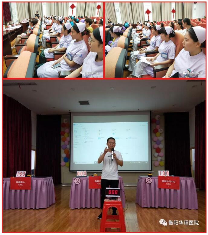 比賽結(jié)束后,副院長黃波對活動給予了高度評價,他說:此次活動是華程醫(yī)院建院以來第一次舉辦的護理知識搶答比賽,形式新穎、護理知識涵蓋面廣,全院護理人員能在百忙之中抽出時間來參加比賽,并且成績不斐,這讓他感到特別欣慰和驕傲。他鼓勵全院護理團隊要在護理部楊露霞主任的帶領下,再接再勵,用豐富的知識、過硬的技能和良好的服務,持續(xù)穩(wěn)定地發(fā)揚南丁格爾精神為人類的健康事業(yè)做出自己的貢獻。
