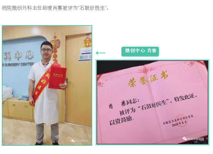 我院微創(chuàng)外科主任助理肖賽被評為“石鼓好醫(yī)生”。