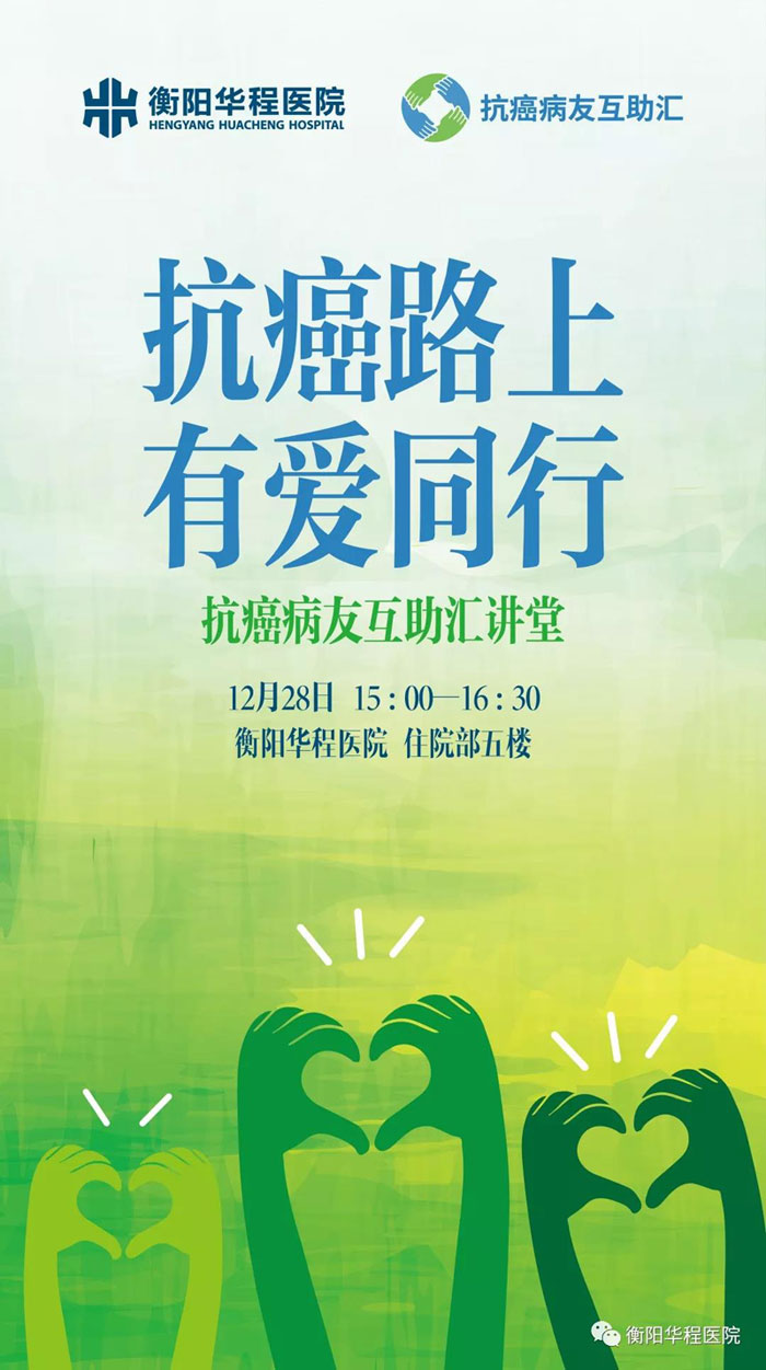 自2018年10月26日由我院舉辦“華程 首屆十大抗癌明星分享會(huì)”活動(dòng)得到了腫瘤病人熱烈反響,應(yīng)廣大病友的要求,我院將從2018年12月28日起每月定期定點(diǎn)舉辦癌癥預(yù)防、治療、保健、康復(fù)、心理、飲食、等方面的知識(shí)講座,通過(guò)專(zhuān)家授課和病友交流會(huì)的形式,建立病友“大家庭”——抗癌病友互助匯,旨在開(kāi)展多種康復(fù)活動(dòng),宣傳有效的抗癌方法和治療手段的同時(shí)持續(xù)推動(dòng)抗癌事業(yè)的發(fā)展和進(jìn)步。