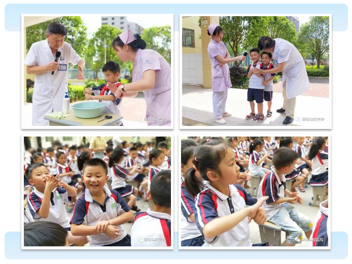 活動中,骨科馮主任用專業(yè)而又通俗易懂的語言告訴同學(xué)們學(xué)好急救知識的重要性,并根據(jù)一、二年級小學(xué)生的日常生活特點(diǎn),教孩子們?nèi)绾握_洗手,面對出鼻血、溺水、氣道異物梗阻等危險(xiǎn)情況應(yīng)該如何應(yīng)對。