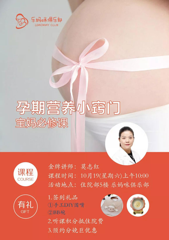 寶寶在媽媽子宮里成長(zhǎng)發(fā)育,每個(gè)階段都需要各種營(yíng)養(yǎng),缺乏任何一種營(yíng)養(yǎng)素,都可能對(duì)寶寶造成不可逆轉(zhuǎn)的影響。我們直接從食物里獲取營(yíng)養(yǎng),而寶寶則從媽媽的身體里獲取營(yíng)養(yǎng)。因此,充足、完整、均衡的孕期營(yíng)養(yǎng),給寶寶一個(gè)安全穩(wěn)定生長(zhǎng)環(huán)境是孕媽咪們可特別注意的事情,如何合理的安排孕期飲食以保證充分的營(yíng)養(yǎng)?華程 樂(lè)媽咪俱樂(lè)部第二十六期課堂:10月19日上午十時(shí),婦產(chǎn)中心副主任莫志紅為孕媽咪們帶來(lái)的《孕期營(yíng)養(yǎng)小竅門(mén)》講座隨同簽到驚喜禮一同送達(dá),可別錯(cuò)過(guò)哦!~