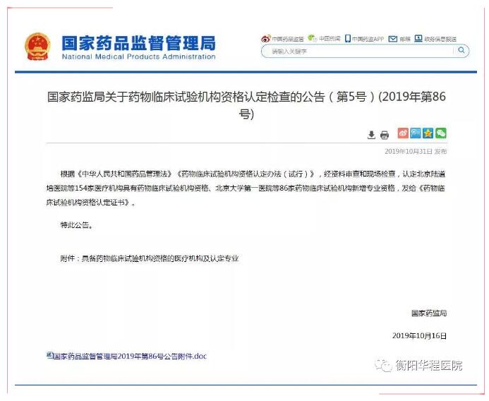 特大喜訊:衡陽華程醫(yī)院通過國家藥物臨床試驗機構(GCP)資格認定