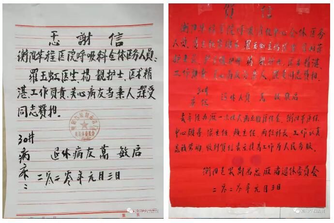 萬老爺子今年80歲,近2年一直被反復(fù)咳嗽、氣促折磨,2019年12月28日因感冒引發(fā)咳嗽、胸悶以致晚上不能平睡、并且感覺左下肺以左大腿內(nèi)側(cè)抽筋樣疼痛,被家人用輪椅推送入院,入院后,經(jīng)消炎、平喘、霧化等對癥治療,十天后病情好轉(zhuǎn),患者要求出院,出院時,為感謝科室全體醫(yī)護(hù)人員精心治療,親手寫下了感謝信。