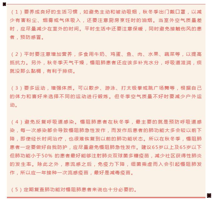 高主任指出:慢阻肺是一種病程漫長,后果嚴(yán)重的慢性疾病,因此僅靠住院治療是遠(yuǎn)遠(yuǎn)不夠的。肺康復(fù)訓(xùn)練主要的目的是增加病人運(yùn)動的耐量,改善病人的生活質(zhì)量,延緩肺功能的進(jìn)一步下降。肺康復(fù)是治療過程中相當(dāng)重要的一環(huán),它包括心理疏導(dǎo)、科普教育、運(yùn)動訓(xùn)練以及其他一些治療工作。每個患者的康復(fù)計(jì)劃并不相同,一般會根據(jù)患者的個人癥狀、運(yùn)動耐量以及生活質(zhì)量的不同來進(jìn)行差異化地定制,但康復(fù)訓(xùn)練的定位本身就是大多數(shù)患者能做,而且病人能夠從中獲益。高主任還用臨床經(jīng)驗(yàn)告訴我們,經(jīng)過積極有效的康復(fù)治療以后,部分慢阻肺患者急性加重的次數(shù)比原來減少,而且癥狀也會有所減輕,對患者來說,藥品的負(fù)擔(dān)也會相應(yīng)下降。但是要注意的是,像萬老爺這樣年紀(jì)較大的慢阻肺患者還合并有一些其他的疾病,比如急性心肌梗死,或者患者正好處于腦血管意外急性期,肺炎的急性階段、肺出血或者消化道出血等等急性階段,那可能就不太適合做肺康復(fù)了。