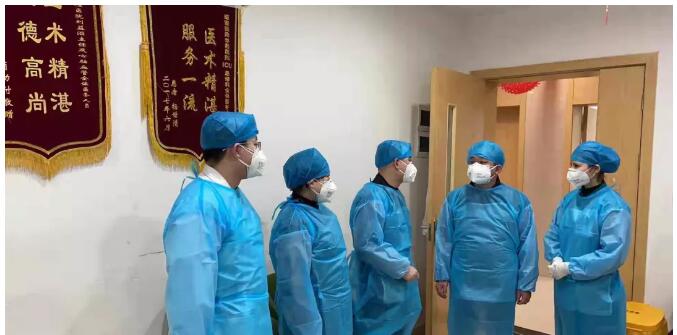 院長祝平照和院感科陳美芳科長到各病區(qū)進行查房,并指示:院區(qū)內(nèi)在崗醫(yī)務(wù)人員(含后勤)務(wù)必做好自我防護工作,必須戴口罩、穿好隔離服。