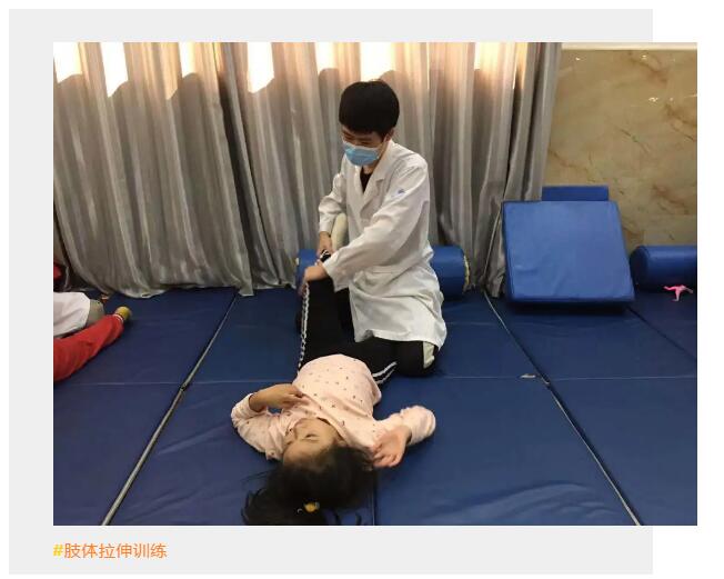來到康復中心的運動訓練室,在一字排開的幾張訓練墊上,醫(yī)護人員正在給患兒進行肢體拉伸訓練。看到中心工作人員向筆者介紹情況,不少家長慢慢圍攏過來,先是傾聽,然后偶爾插句話。